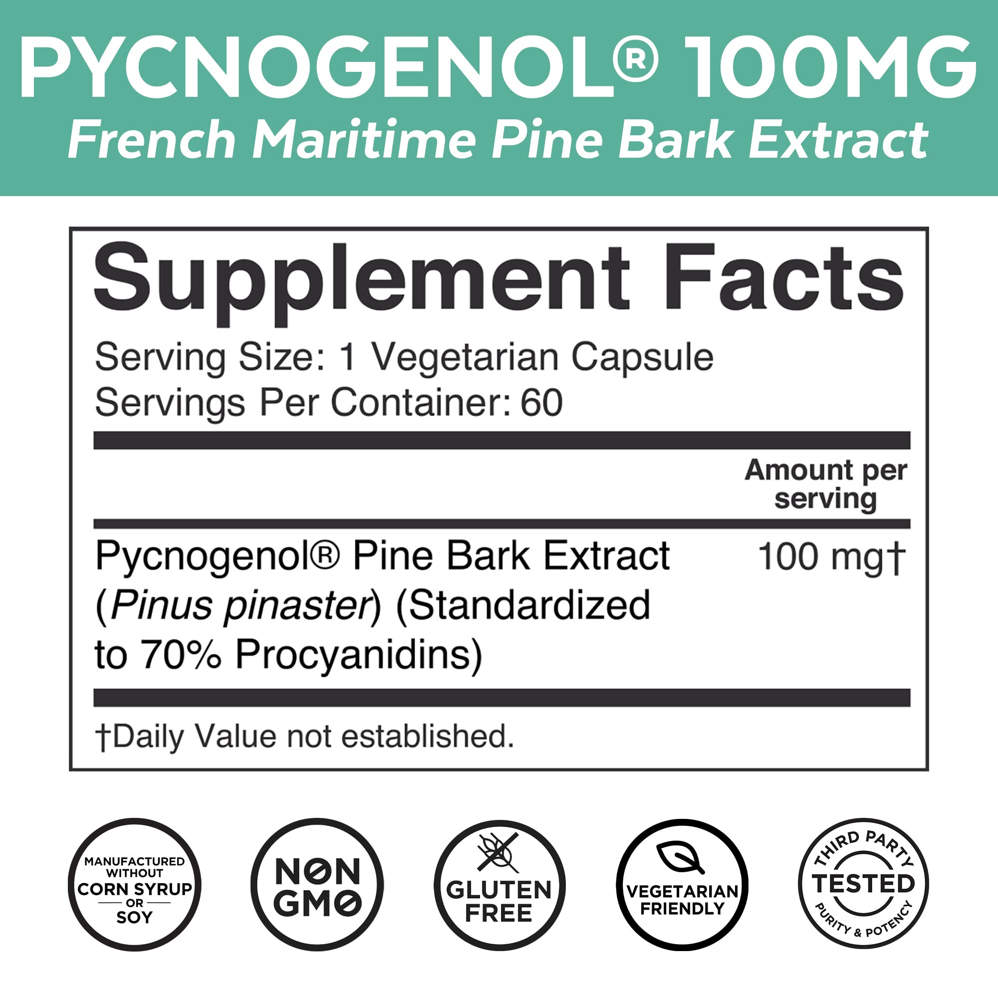Pycnogenol 100mg from French Maritime Pine Bark Extract - Healthy Blood Circulation Supplements, Powerful Antioxidant Protection, Joint Support and ...